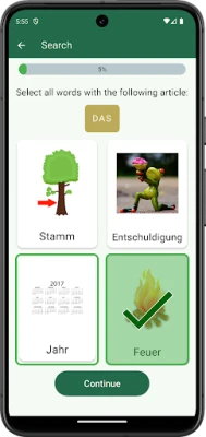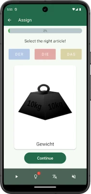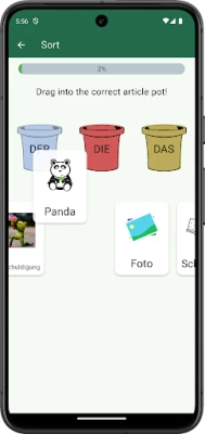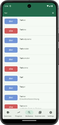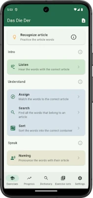 In addition, the app includes a dictionary with more than 50,000 nouns, which can be used to look up the article, based on the german Duden.