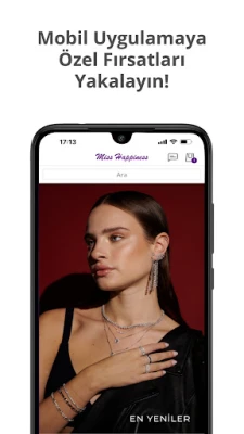 Miss Happiness alışveriş deneyiminizi daha da ileri taşımak için artık yepyeni bir kanalımız var. Tüm koleksiyonlarımıza ve ürünlerimize ulaşmak uygulamamız ile çok kolay. 925 Gümüş ve 14K Altın koleksiyonlarımızın tamamı uygulamamızda! Tüm ürünlere ulaşmak, uygulamaya özel indirimlerden ve önceliklerden faydalanmak ve yeni eklenen tüm ürünlerden ilk haberdar olmak için uygulamamızı indirin.