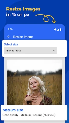 Additionally, this photo resizer app offers convenient image conversion capabilities. Resize images from JPG to PNG or WEBP formats easily, allowing for greater flexibility and compatibility across different devices and platforms. Seamlessly switch between formats and enjoy optimized image quality while reducing file sizes with the Photo Size Reducer.
