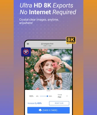 Export lossless PNG or WebP up to 8K—perfect for pros and creators.
