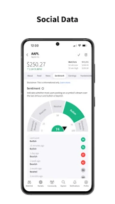 All information and data from the App, including, but not limited to, third-party information and social media community driven content & communications, are for informational purposes only and should not be considered a recommendation or solicitation for the purchase or sale of securities or other investment products. The information provided is not warranted as to completeness or accuracy and is subject to change without notice.
