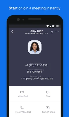 -Easily join a meeting or start an instant meeting with phone, email, or company contacts